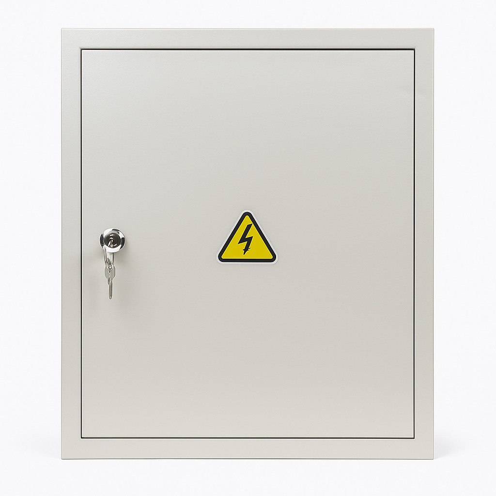 Размер: 500х400х220 (ВхШхГ) Размещение: Корпус навесного типа Степень защиты: IP31 материал: сталь Комплектация: замок щитовой с 2мя ключами, знаки наклейки, кабель заземления, гайки, монтажная панель Сфера применения: от жилого сектора до промышленности Количество вводов: 3х31 Покрытие: полимерно-порошковое цвет: RAL 7035 шагрень
